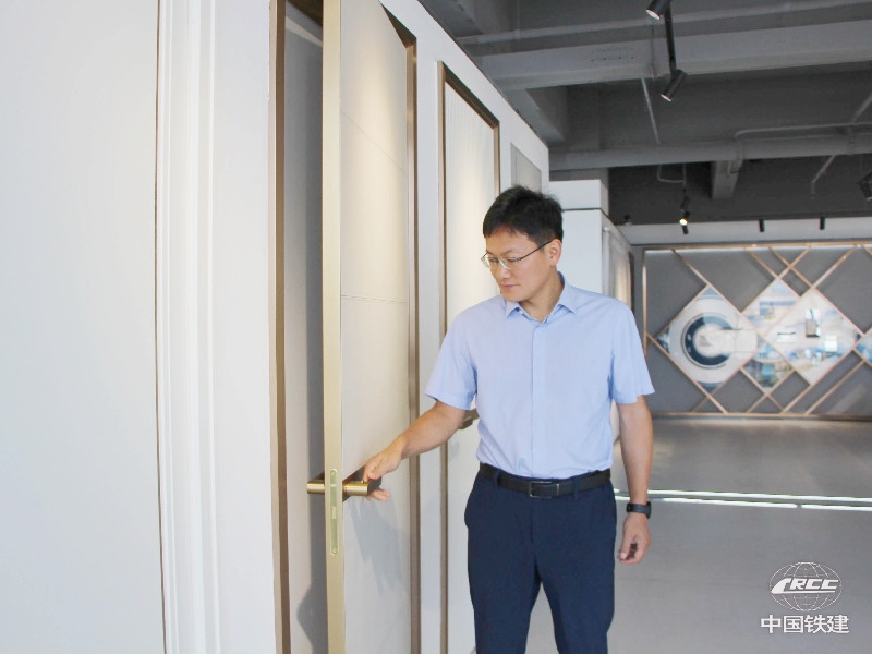 龔曉剛在公司產(chǎn)品研發(fā)基地產(chǎn)品庫(kù)對(duì)比選擇戶內(nèi)門材質(zhì)工藝(中鐵地產(chǎn)西南公司 供圖)