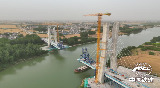 阜淮鐵路230米高低塔斜拉橋掛籃吊裝施工(上海院 供圖)