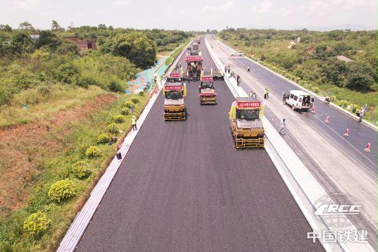 隨著路面攤鋪機緩緩前進,一條橫坡規范、路面平整、厚度標準的高速路面像黑色地毯一樣徐徐鋪開。日前,由該公司參建的雄信高速主線瀝青路面全部完成攤鋪。